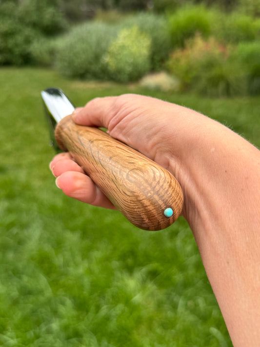 #98 - Post Oak Pizza Cutter with Fox Turquoise Cabochon