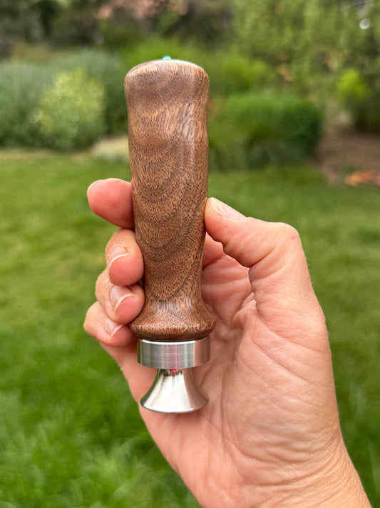 #102 - Curly Walnut Bottle Opener with Fox Turquoise Cabochon