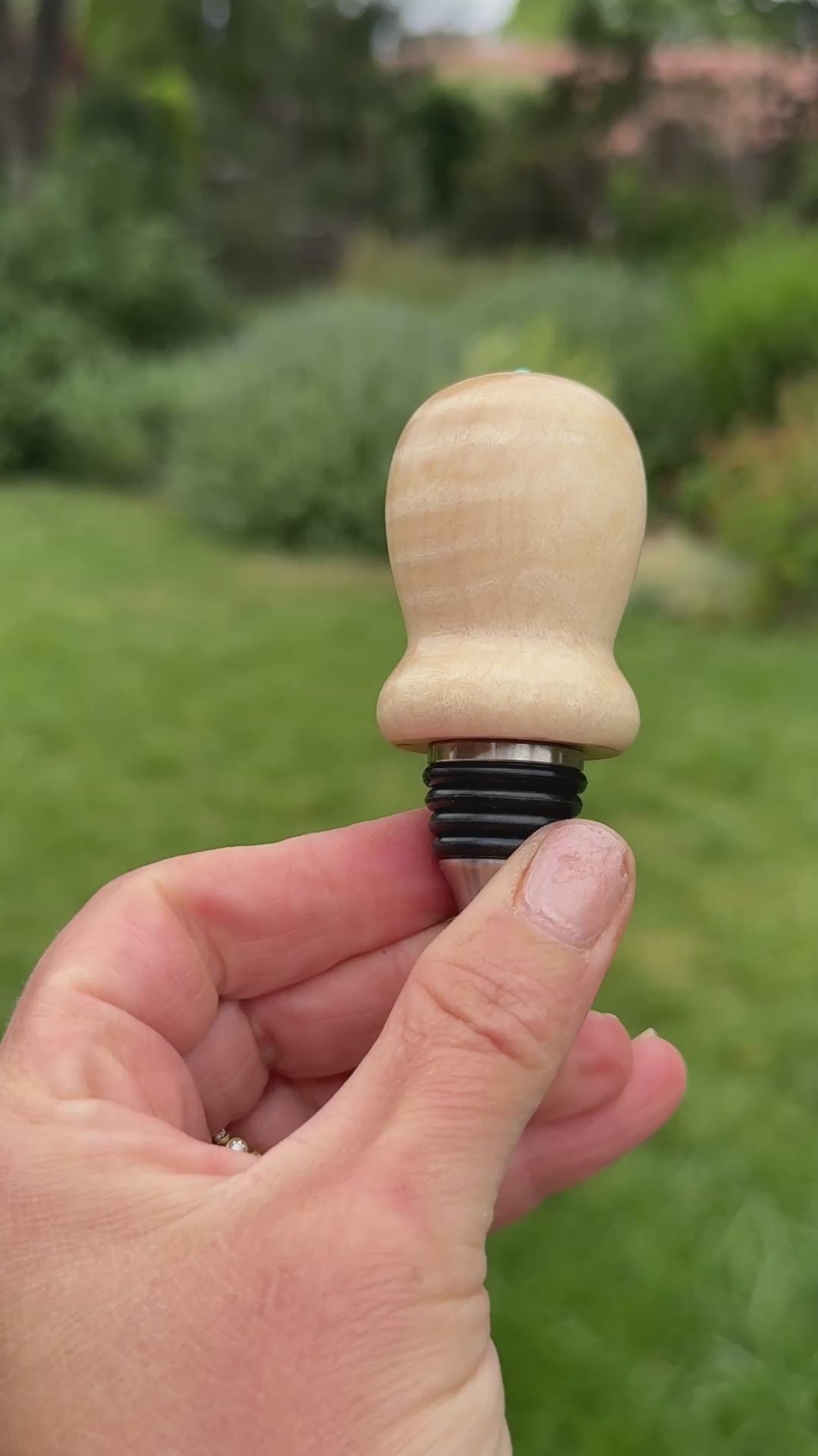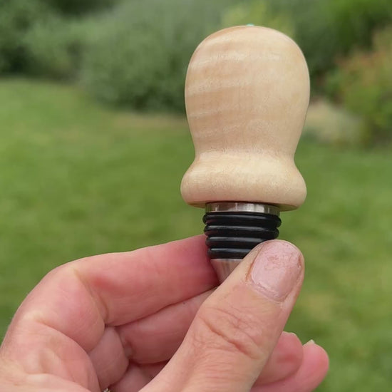 #108 - Curly Maple Burl Bottle Stopper with Fox Turquoise Cabochon
