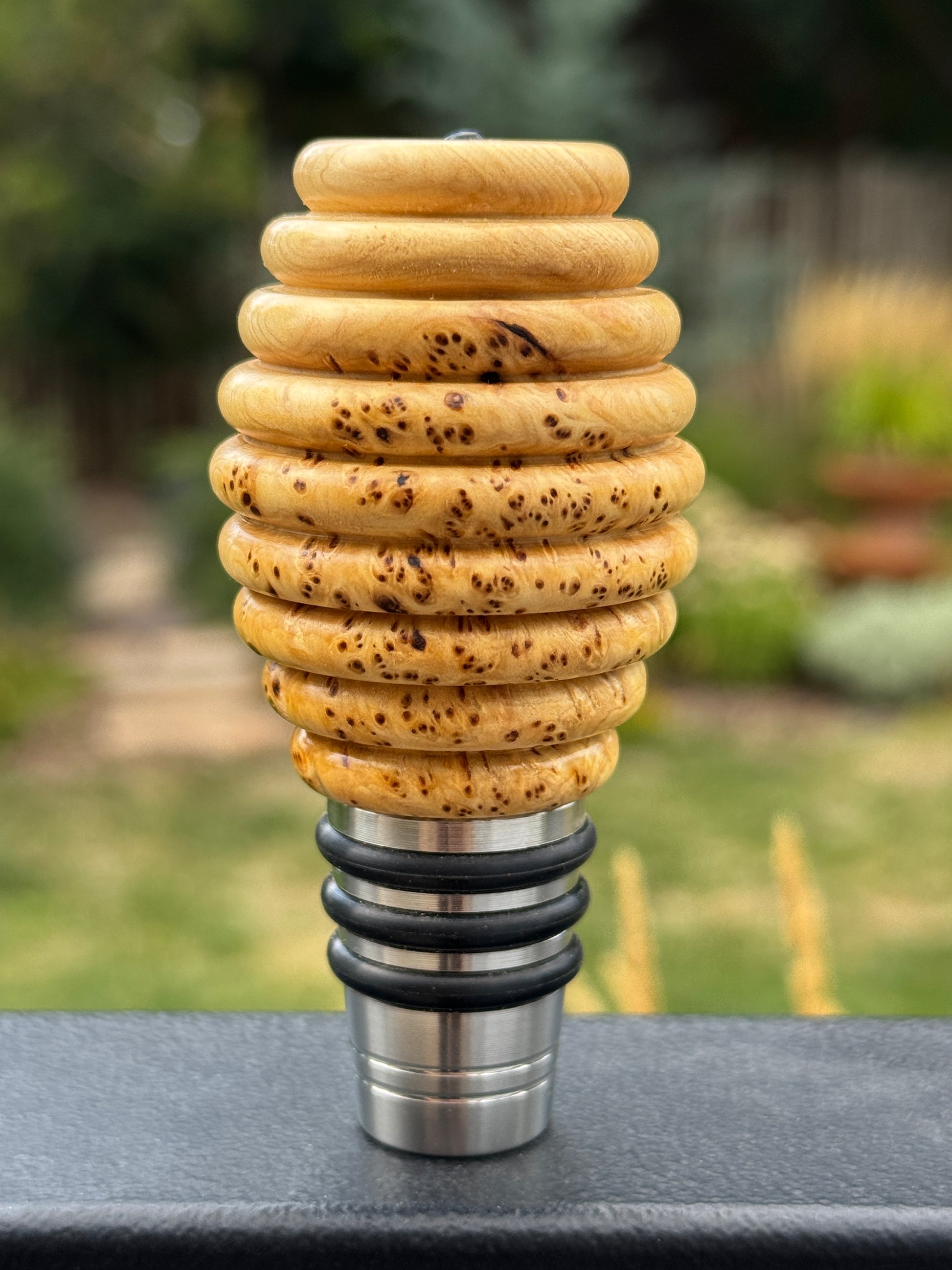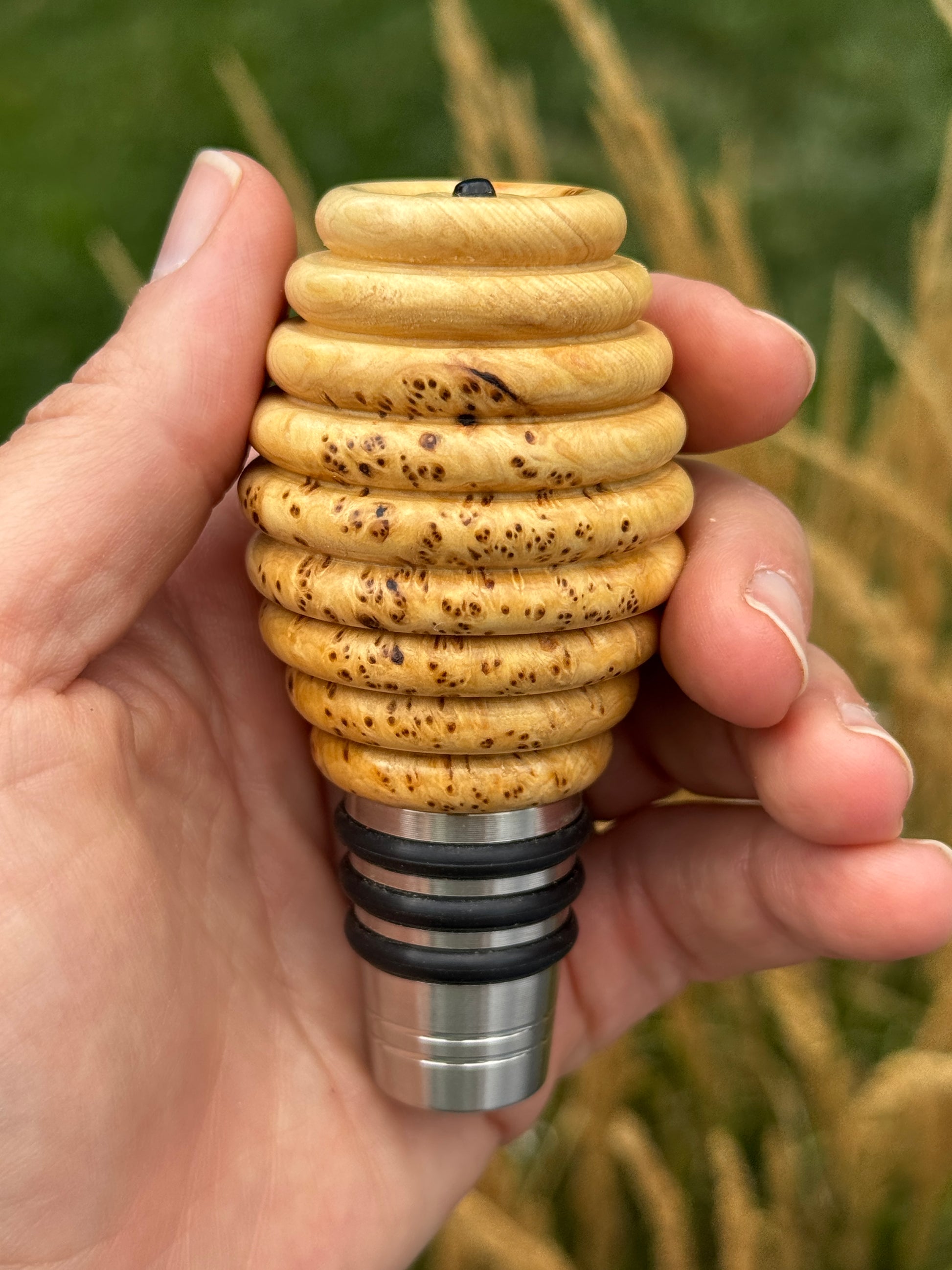 #125 - Cedar Burl Whiskey Bottle Stopper with Black Mother of Pearl Cabochon