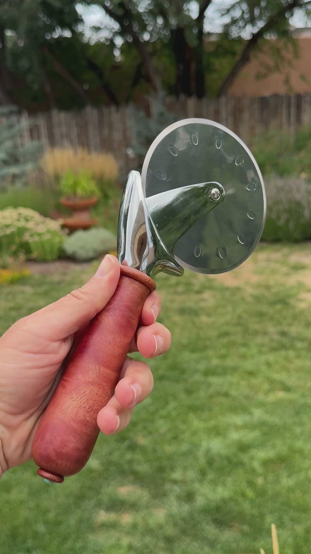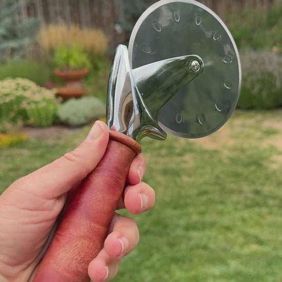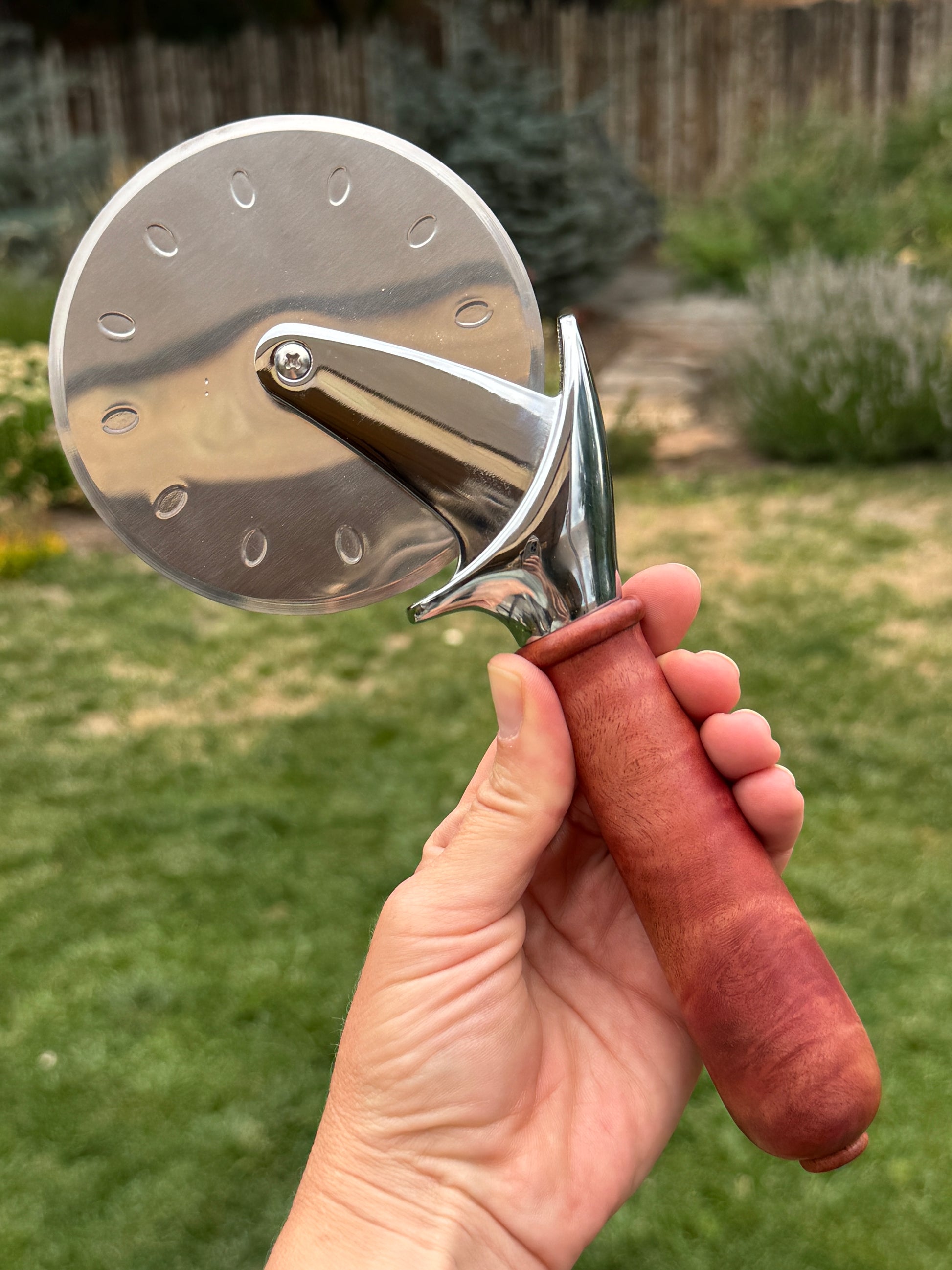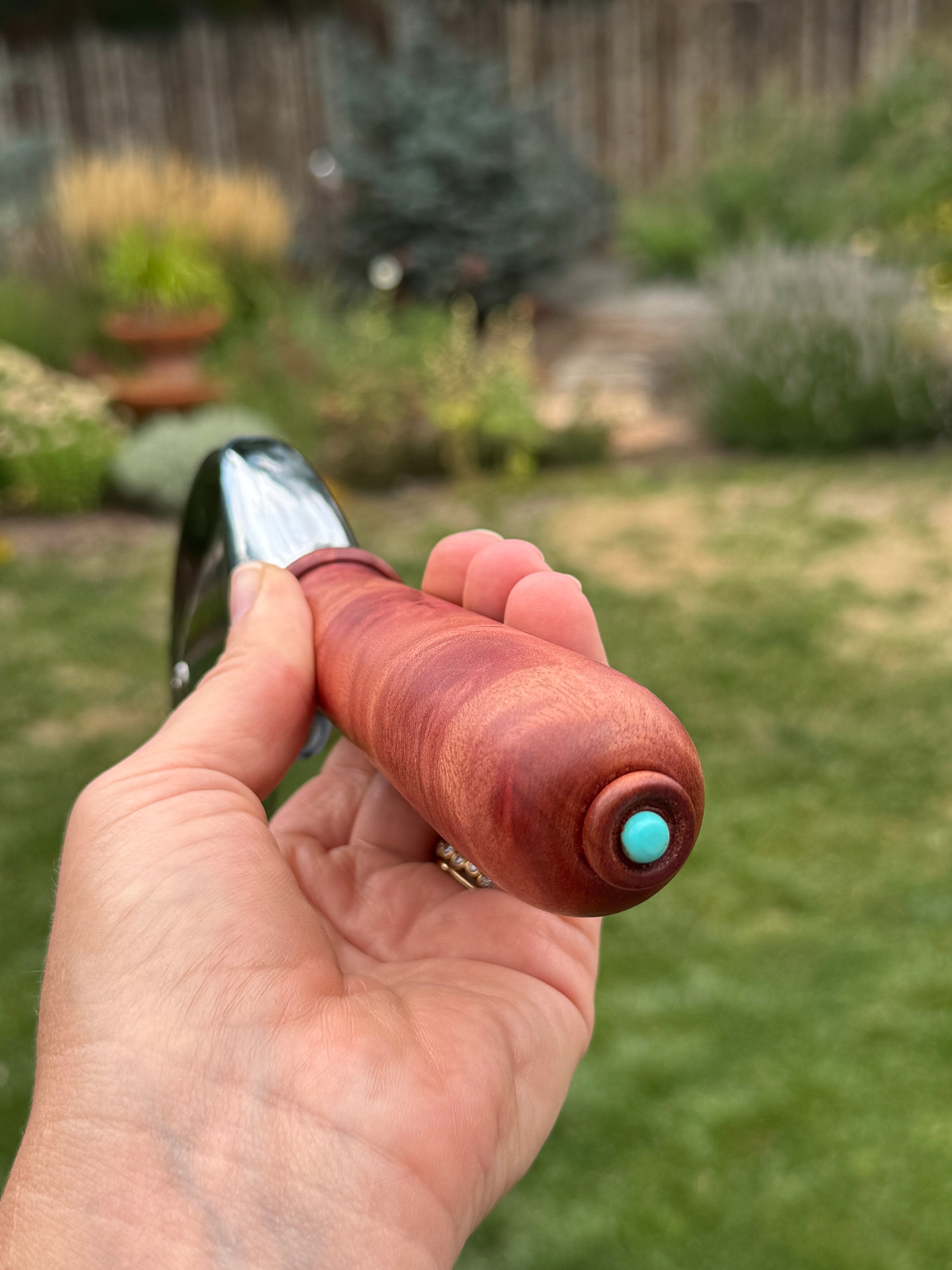#137 - Camphor Burl Pizza Cutter with Sleeping Beauty Turquoise Cabochon