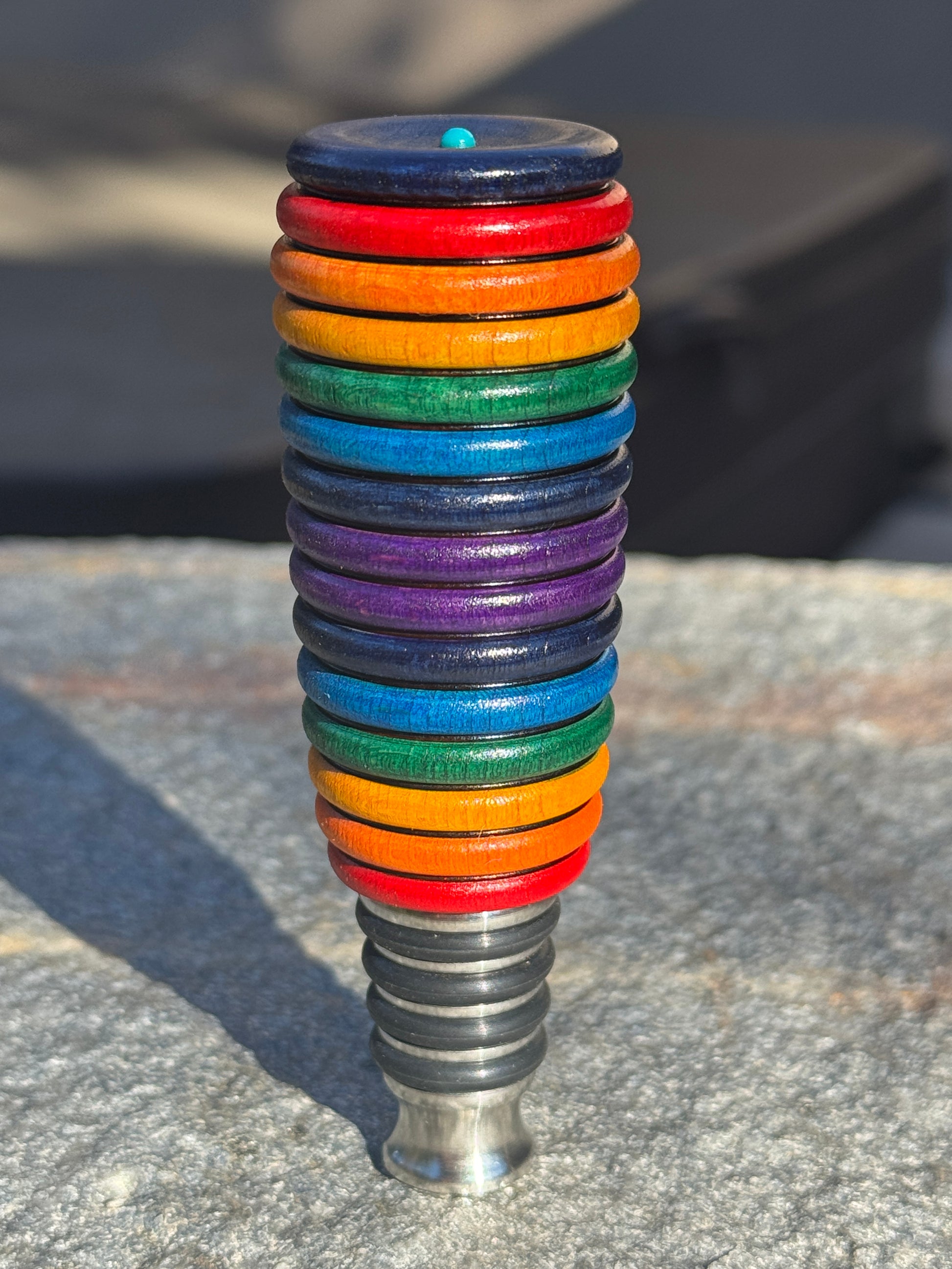 #186 - Rainbow Beaded Wine/Whiskey/Olive Oil Bottle Stopper with Sleeping Beauty Turquoise Cabochon