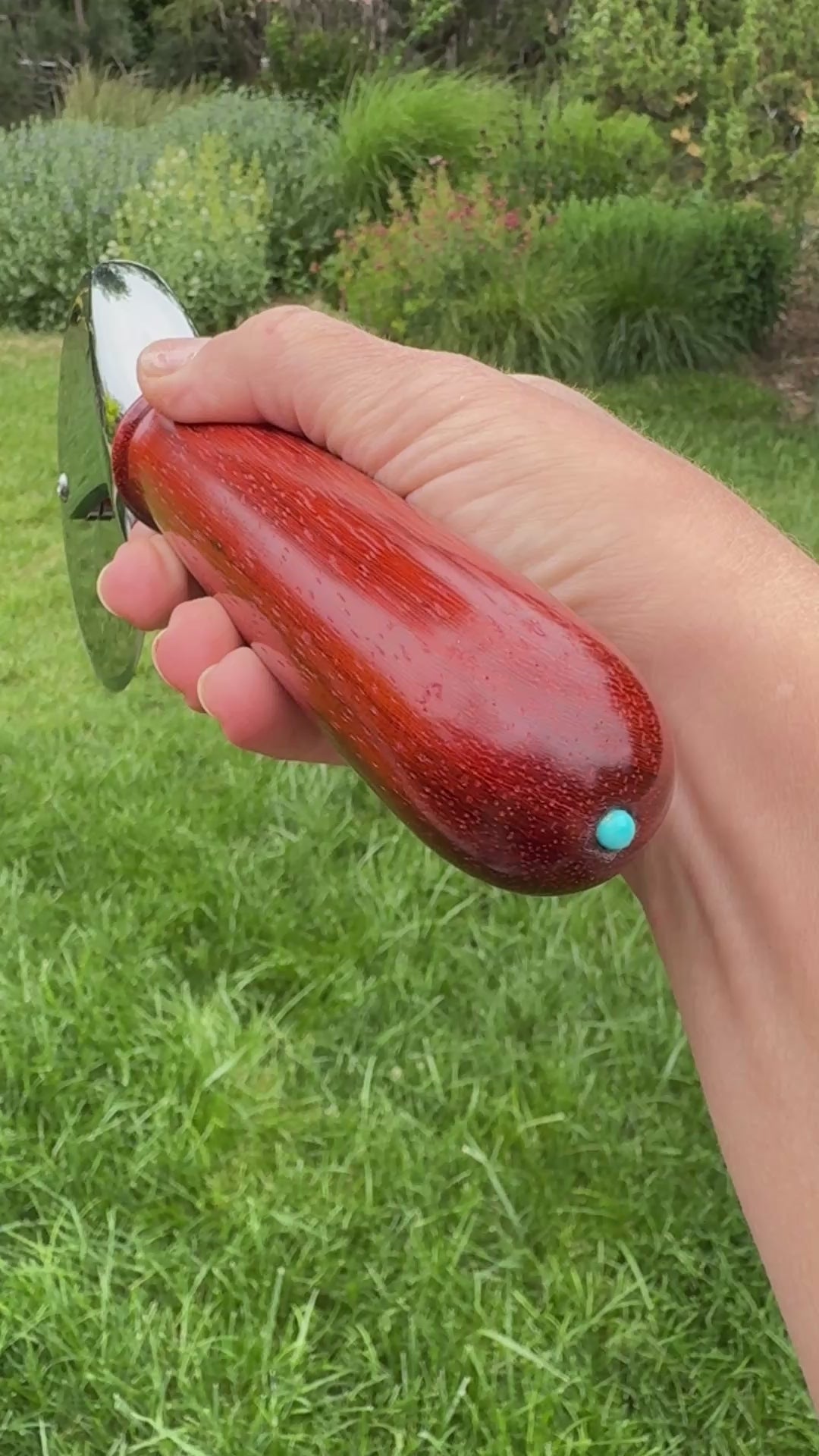 #89 Padauk Pizza Cutter with Fox Turquoise Cabochon