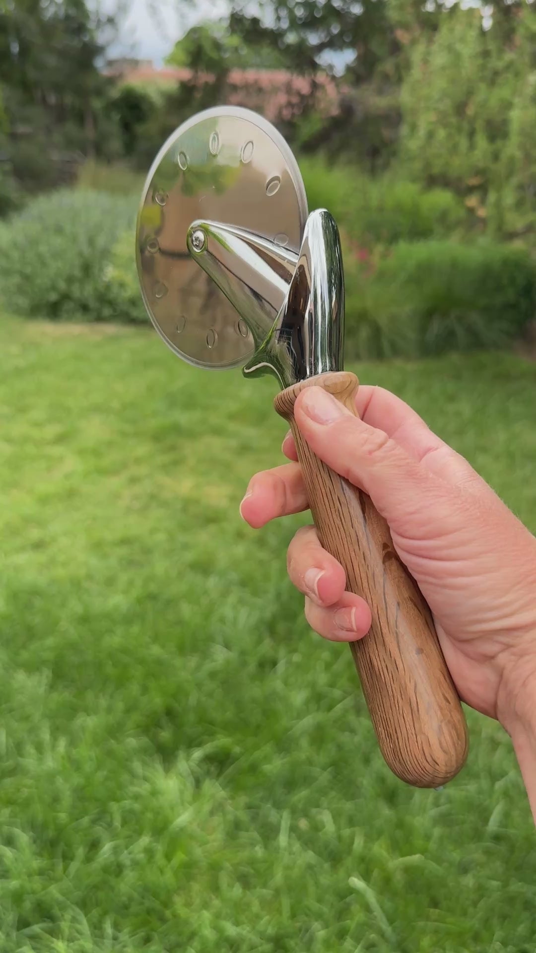 #98 - Post Oak Pizza Cutter with Fox Turquoise Cabochon